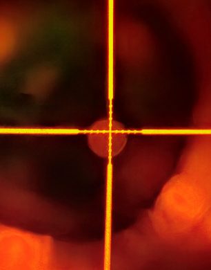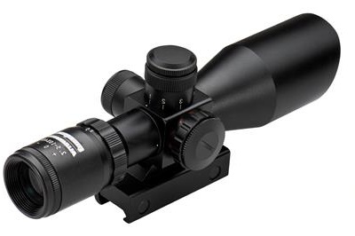 Mira Maximal Aluminator, da marca Maximal, com 9 dots (4 em cima, 1 no meio e 4 em baixo) e regulação de intensidade (1 a 5) com cor vermelha ou verde e zoom regulável de 2.5x a 10x; base weaver incorporada; concebido para Tiro com Besta.